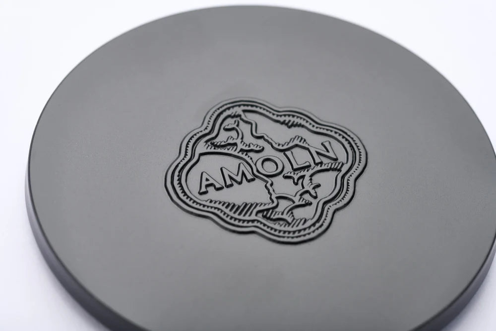 The solid metal candle lid protects Amoln’s monochromatic blue candles and preserves the scent. Handcrafted and featuring Amoln’s embossed logo, each lid is unique.