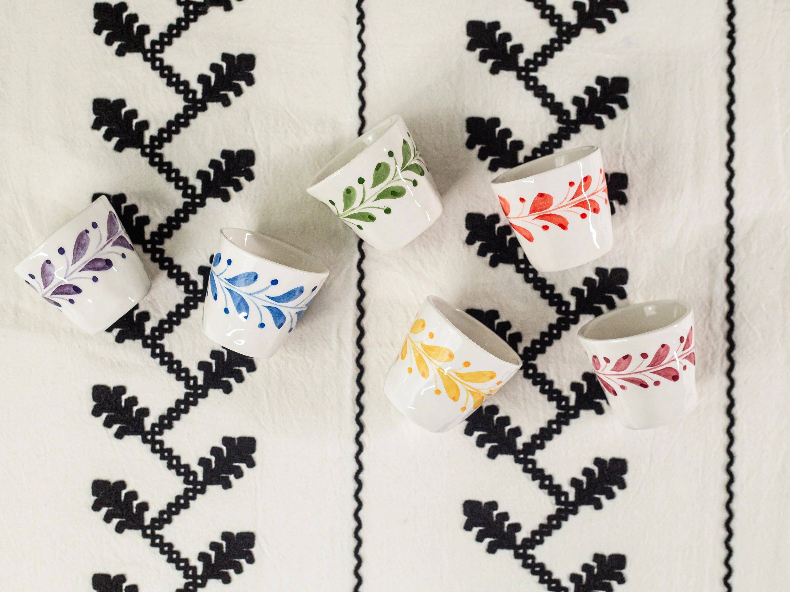 Inspired by an antique Greek dish featuring an intricate olive decoration, the Anna has been reworked in a more simplistic style. These espresso cups will make every morning a little sweeter.