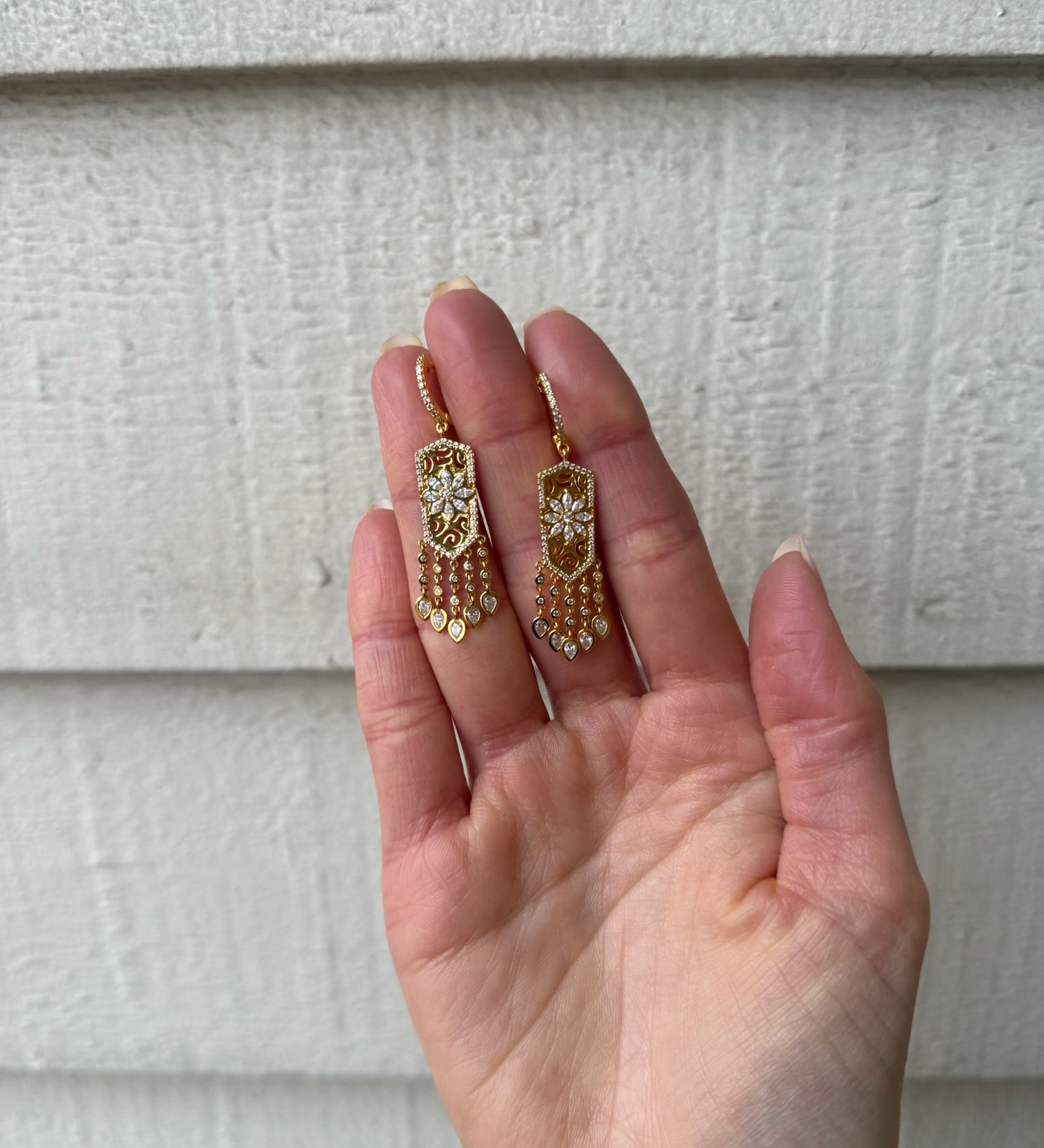 Buddha Mama: Flower Filigree Dangle Earrings with Diamonds