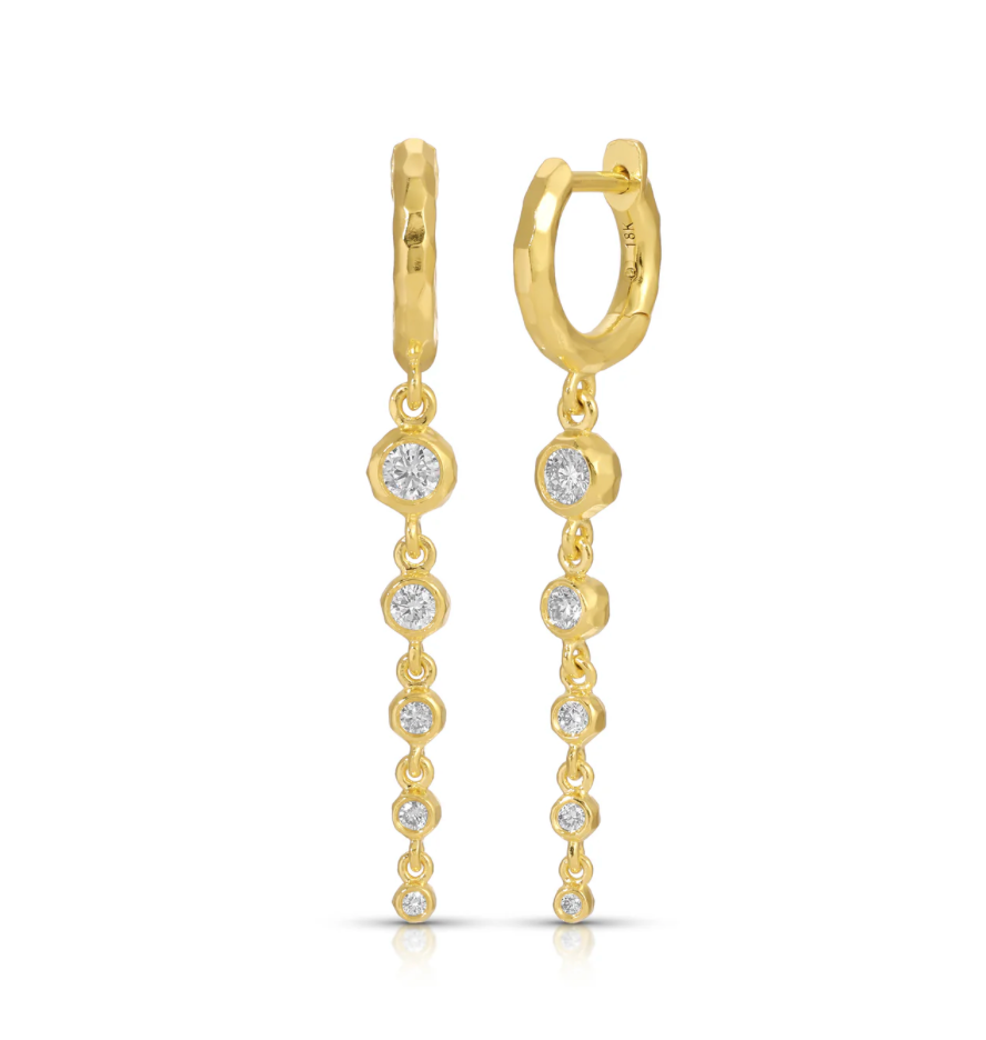 From Octavia Elizabeth's Nesting Gem Collection, a classic with a twist! We love the length of these five graduated diamond drop earrings. These are great earrings for everyday wear, or special occasions.
