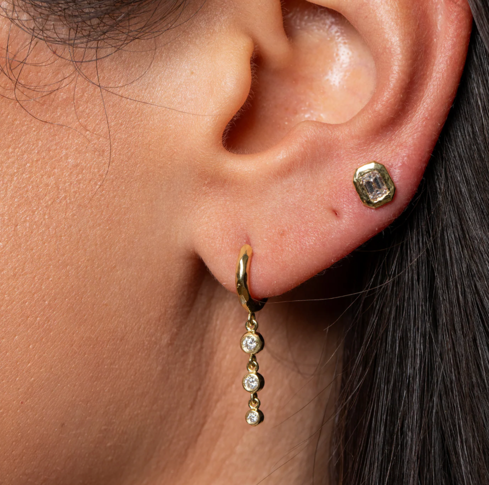 From Octavia Elizabeth's Nesting Gem Collection, a classic with a twist! We love the length of these earrings for everyday wear. They can be worn as one, but they look great as a pair too.