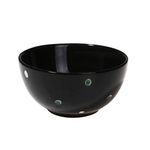 Designed by Carolina Irving and Daughters, and available exclusively in Nashville, TN at Department, the Clara cereal bowl has white and green dots that contrast beautifully with the rich black background.