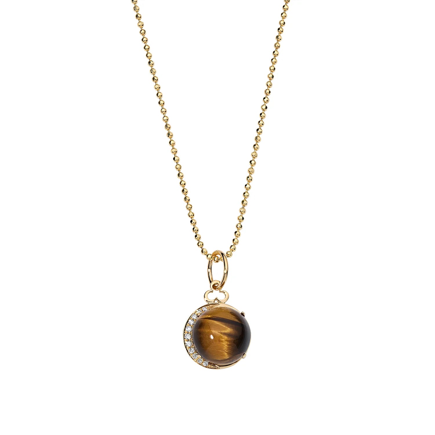 Our Majesty Ball Chain is made of extra-sparkly spheres that have been faceted with a special diamond tool to give it a special shimmering appearance. We love wearing this 14k gold chain both all on its own and layered with different chains! No charm included but shown in charms shown in additional photos for inspiration and visualization. Just wait until you see the way this charm shines and sparkles in the light, even on its own without a charm.