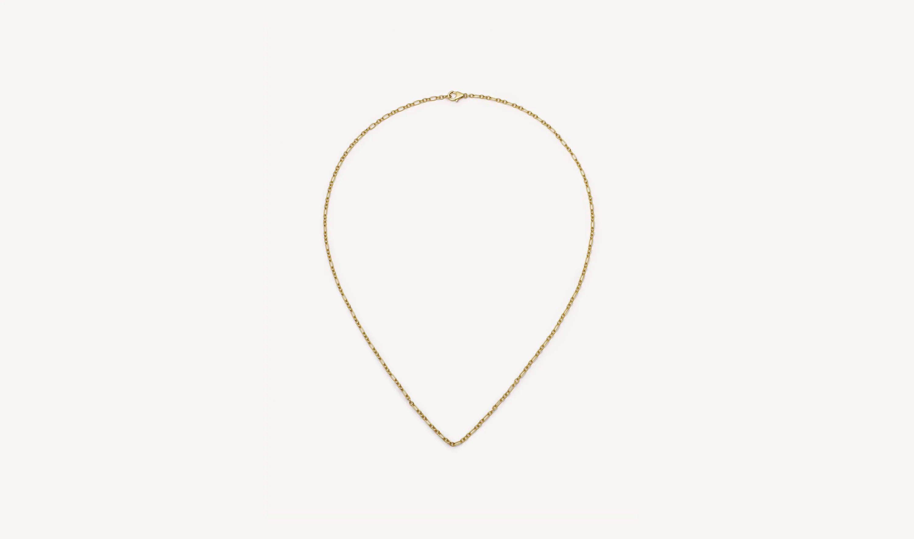 22" crafted in 18k yellow gold.  Made in Italy. The Figaro Chain is a timeless classic. Our version has alternating elongated oval links interrupted by a trio of smaller ovals. It is a versatile chain thatgoes perfectly with our Signature and Heirloom lockets.