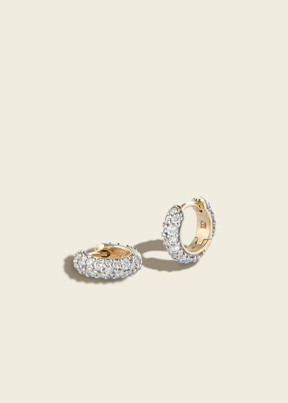 Elevate your jewelry collection with these stunning Chubby Brown Diamond Huggy Earrings, crafted in luxurious 14kt yellow gold. Featuring a Victorian-inspired design, these chic earrings showcase exquisite diamond pavé set in a modern finish, making them a perfect blend of vintage charm and modern elegance. Wearable everyday and complimented when stacked with other hoops.
