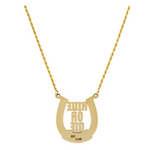 18K Yellow Gold “Ride or Die” Horseshoe Necklace with Diamonds on 18’’ Rope Chain