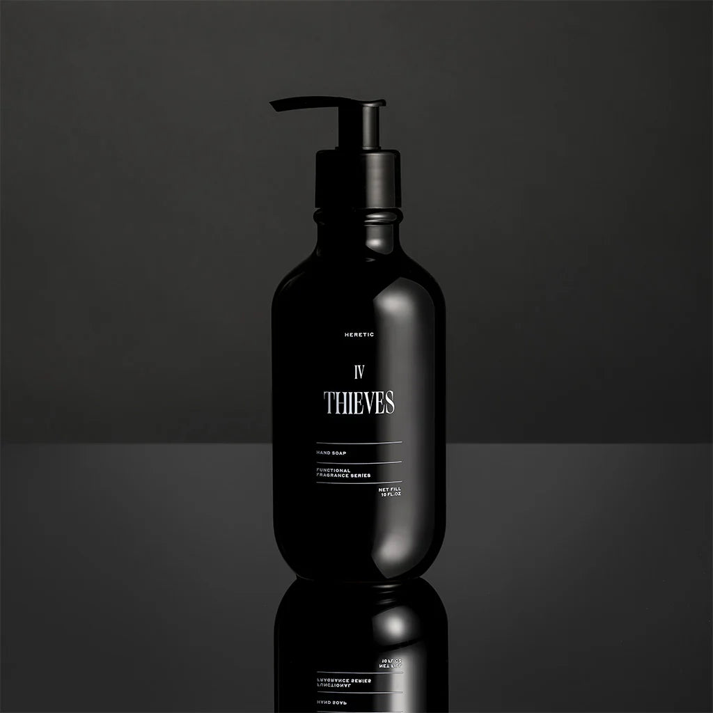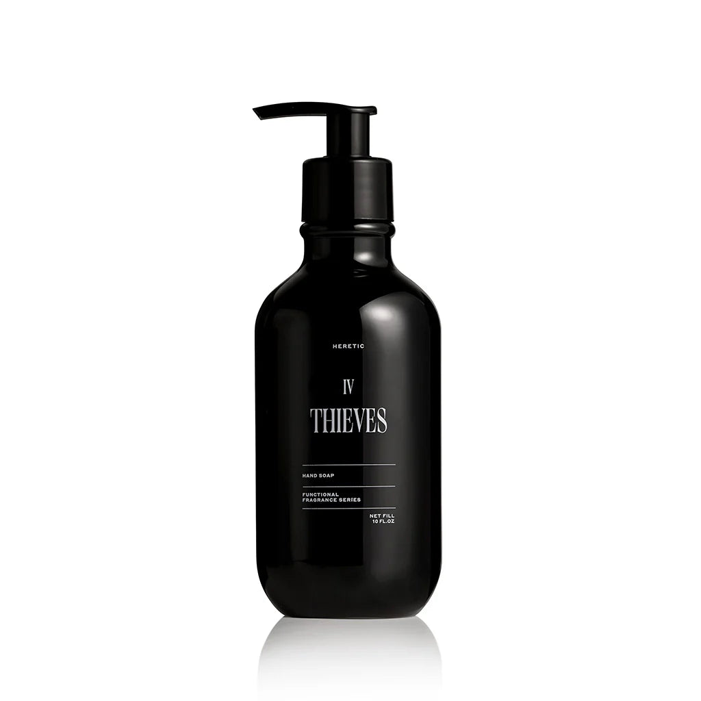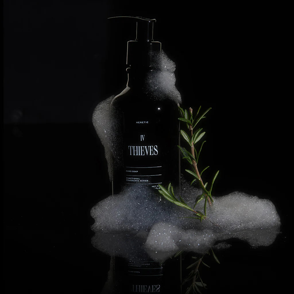 IV Thieves Hand Soap is a complex herbaceous elixir with extraordinarily protective properties, just as the alchemical concoction known as Four Thieves Vinegar once did. Crafted with frankincense, rosemary, geranium and clove, this cleansing ritual helps to ward off bacteria while invigorating the senses.