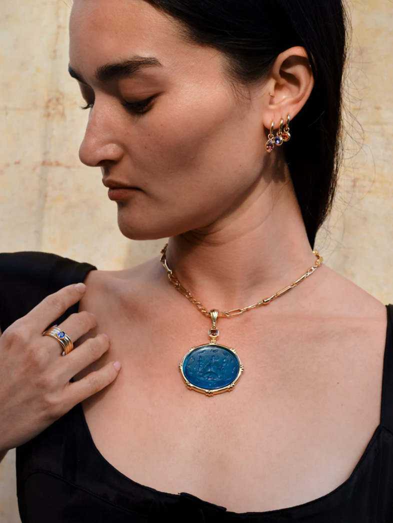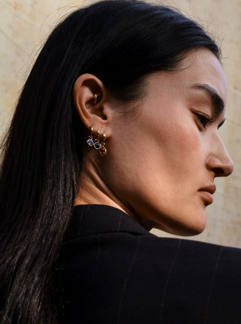 Tanzanite is known for its calming energy and unique vibrance. Paired with a minimalist gold hoop, the result is a look that feels polished, lightweight, and endlessly wearable.