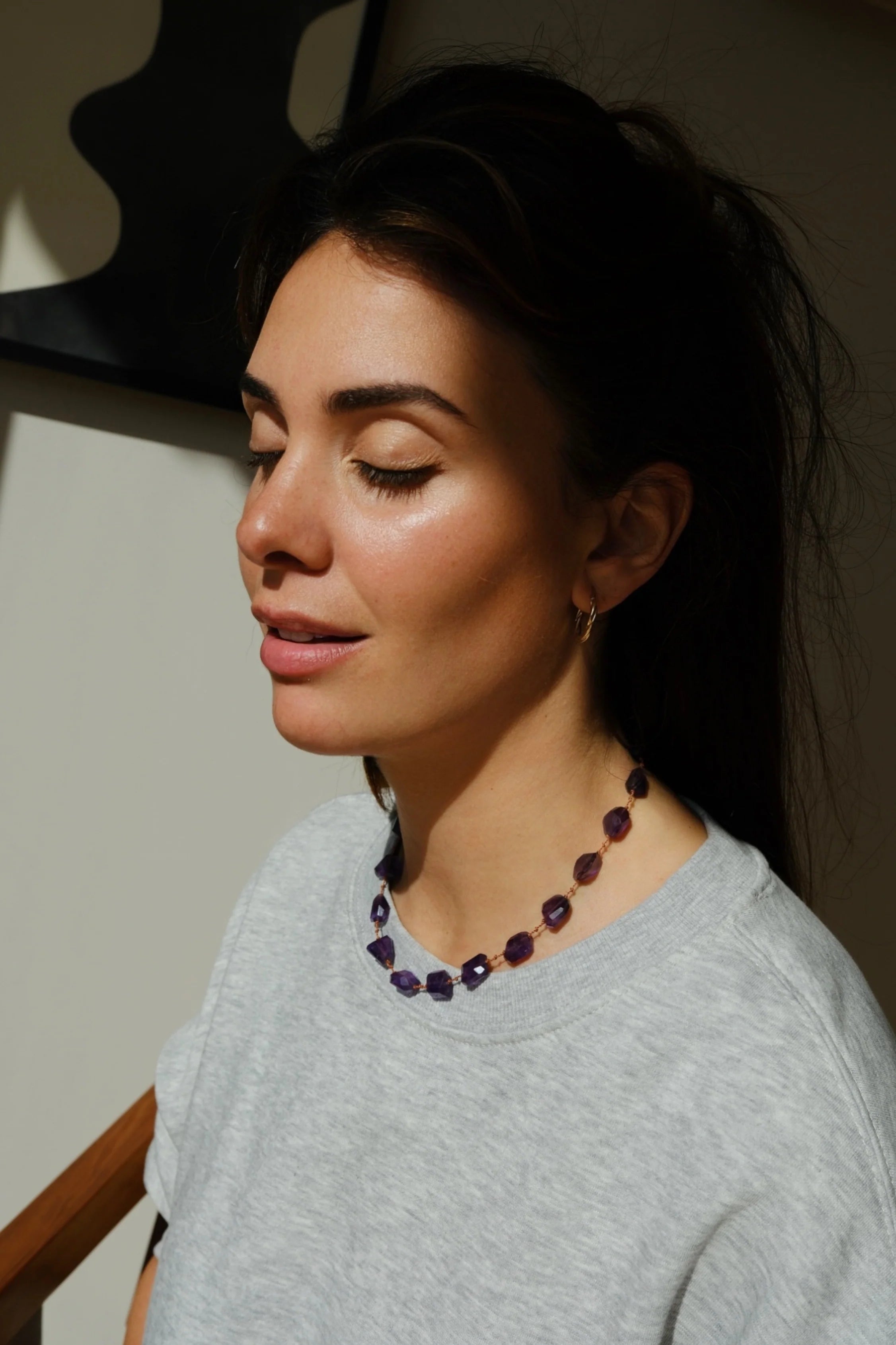 Handmade in Paris, the 'Harrison' necklace sublimates generous nuggets , which stand out for their imposing size and irregular shape , while capturing the light naturally. The spaced mounting gives the jewel a visual lightness and a graceful fluidity, allowing each stone to shine individually. This play of contrast between therobustness of the stones and the delicacy of the mounting creates a perfect harmony, giving the necklace a look that is both powerful and subtle . The 14K gold filled clasp , discreet and refined, completes this unique piece. Ideal for those looking for a piece that is both bold and elegant.