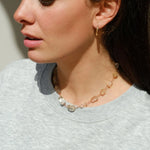 Handmade in Paris, the 'Harrison' necklace sublimates generous nuggets , which stand out for their imposing size and irregular shape , while capturing the light naturally. The spaced mounting gives the jewel a visual lightness and a graceful fluidity, allowing each stone to shine individually. This play of contrast between therobustness of the stones and the delicacy of the mounting creates a perfect harmony, giving the necklace a look that is both powerful and subtle . The 14K gold filled clasp , discreet and refined, completes this unique piece. Ideal for those looking for a piece that is both bold and elegant.