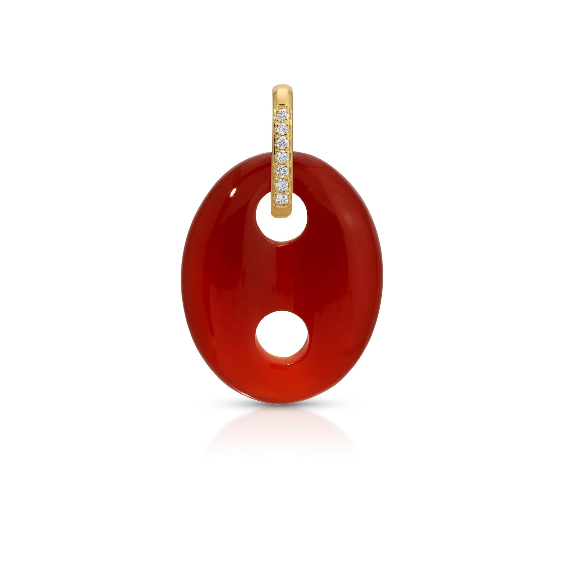 18K Gold Mariner Link Pendant in Carnelian & Diamonds. Rich carnelian for courage and confidence, pavé white diamonds for brilliance, and the iconic mariner link for inner strength.