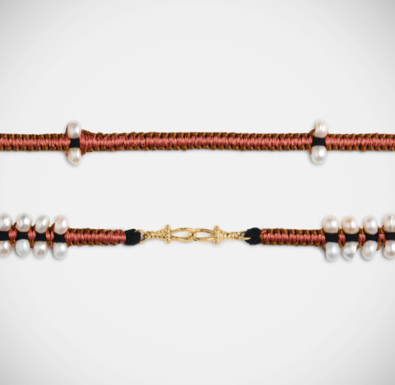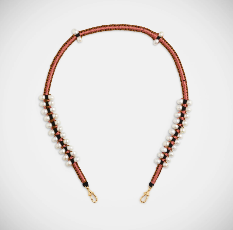 Ica Pink link 35cm, adorned with freshwater pearls.
