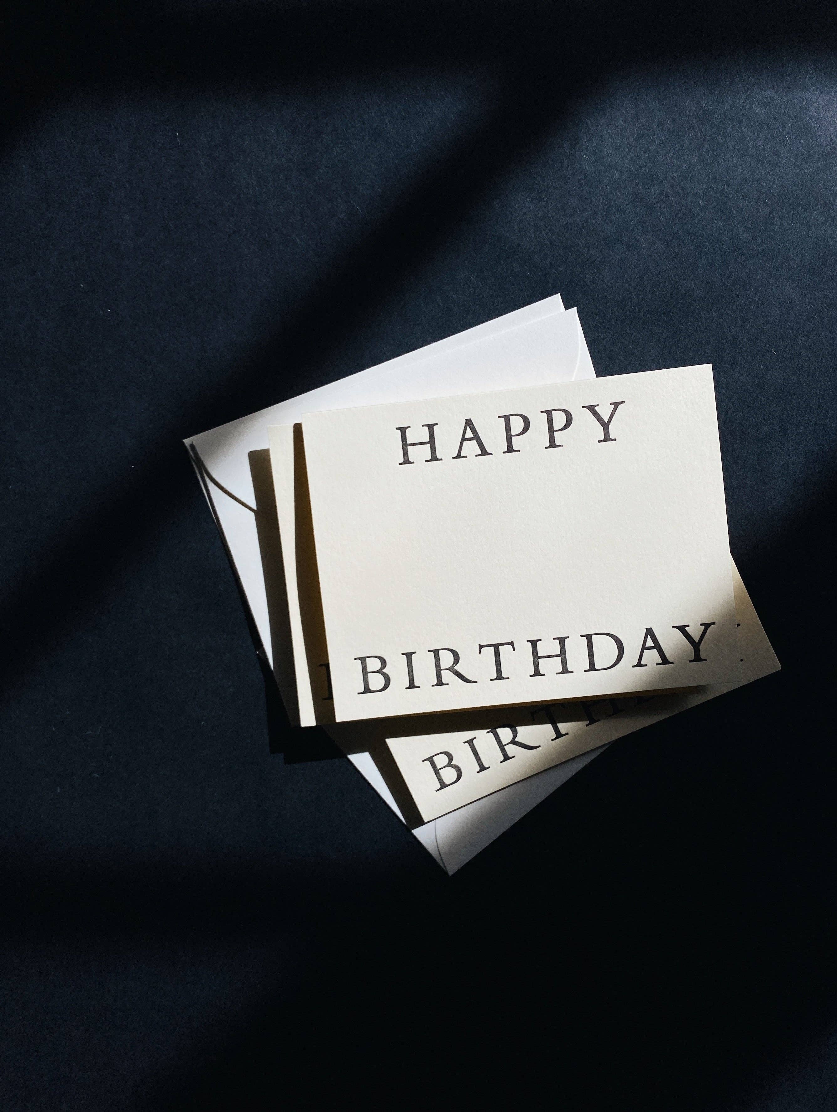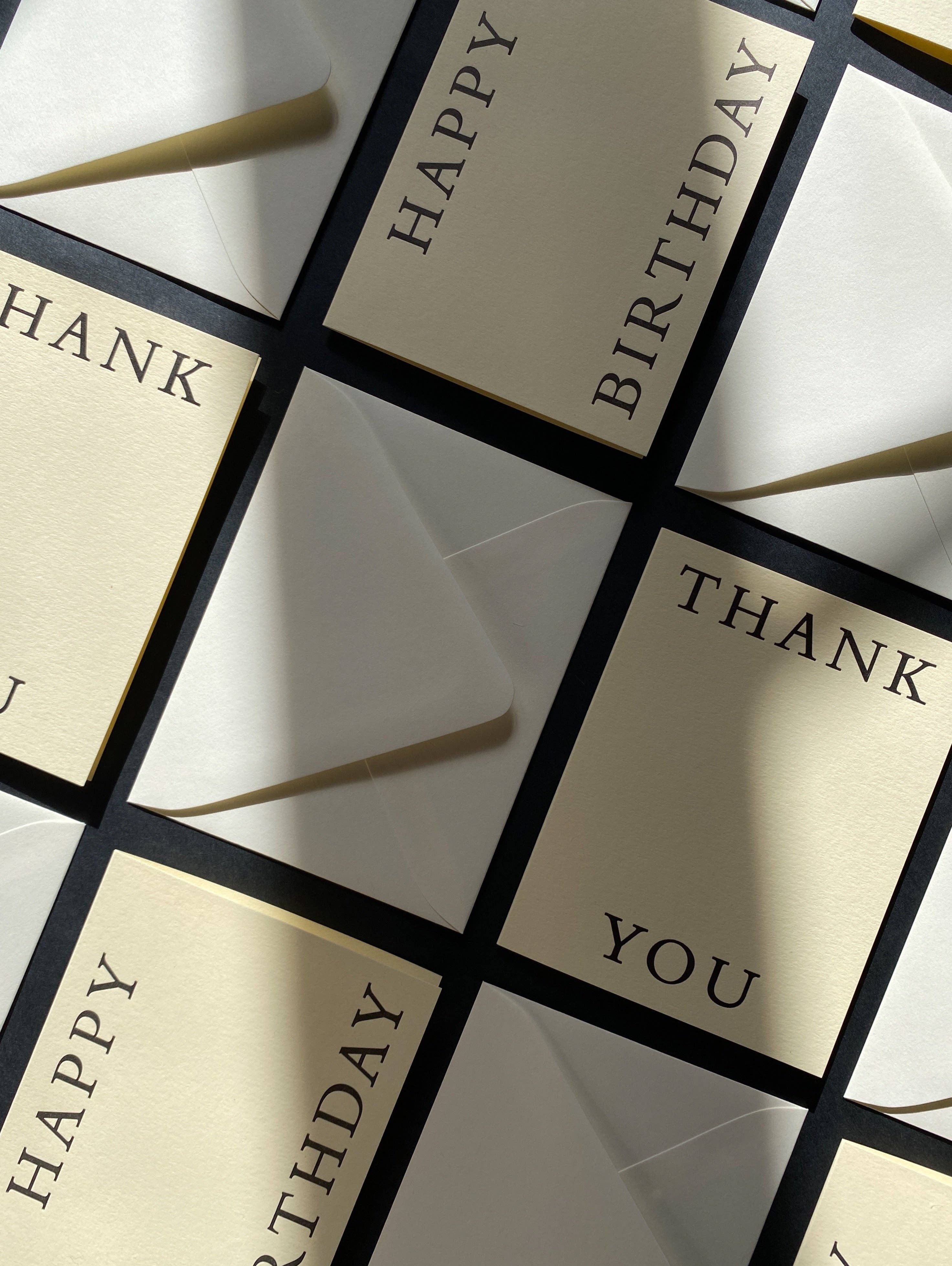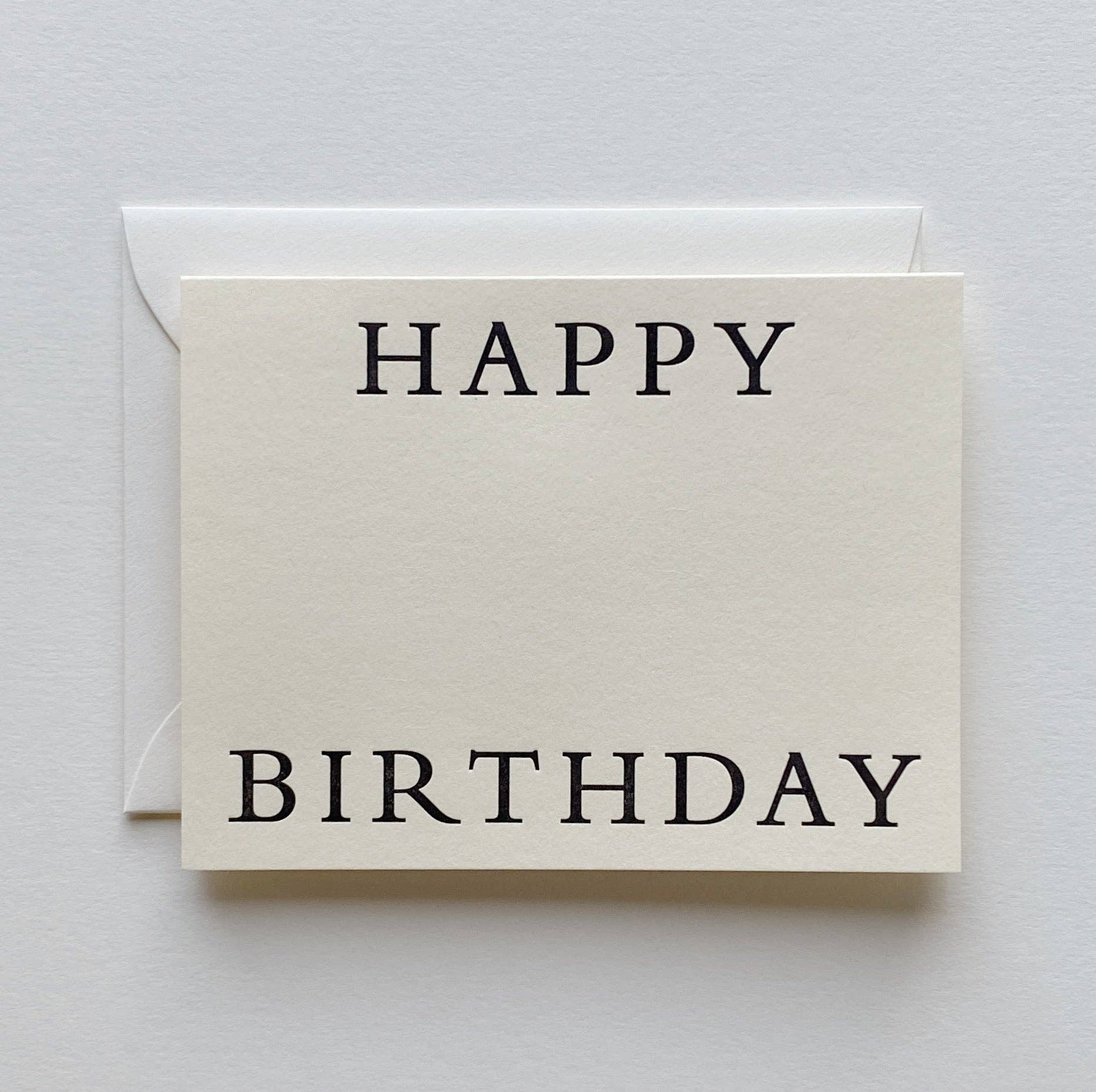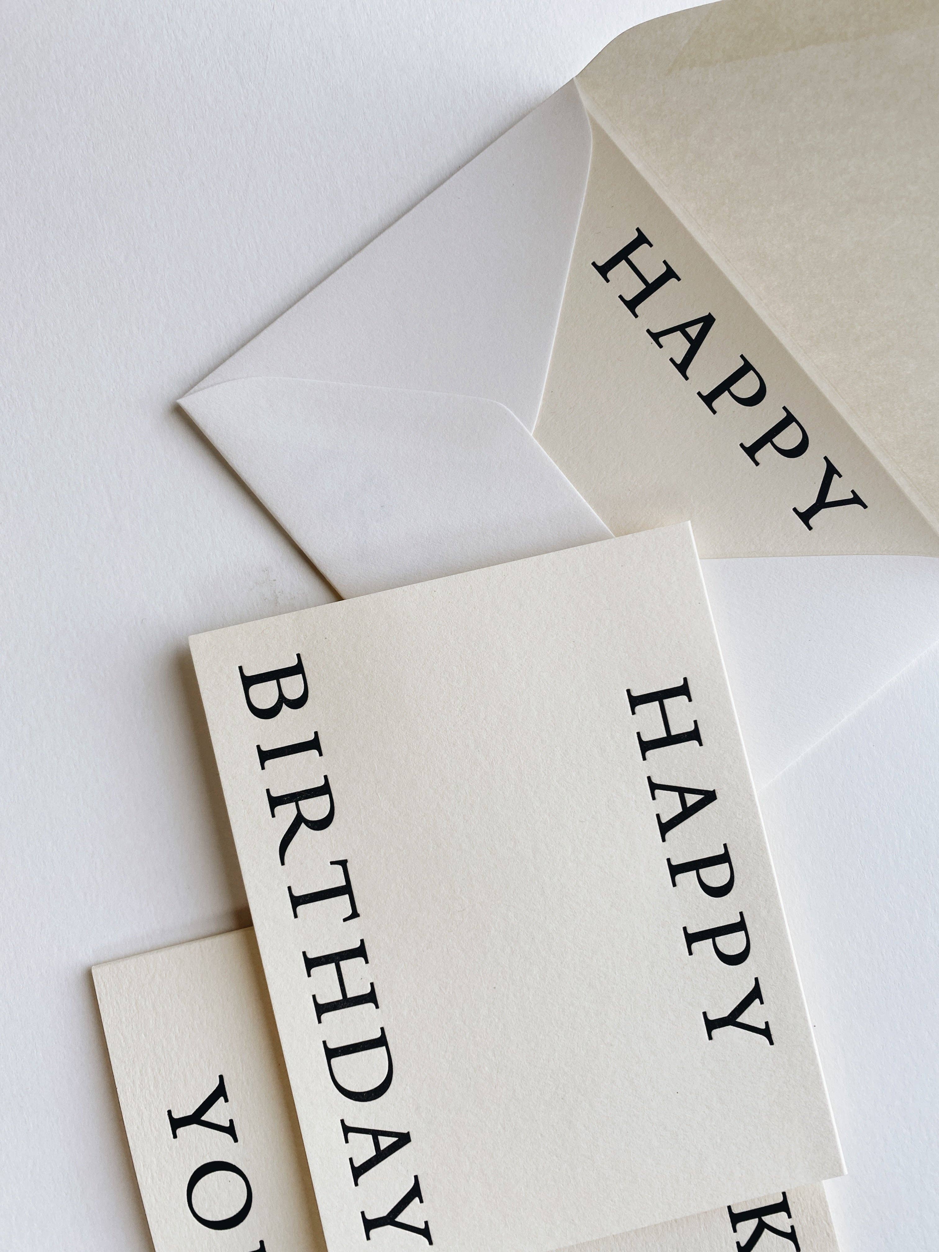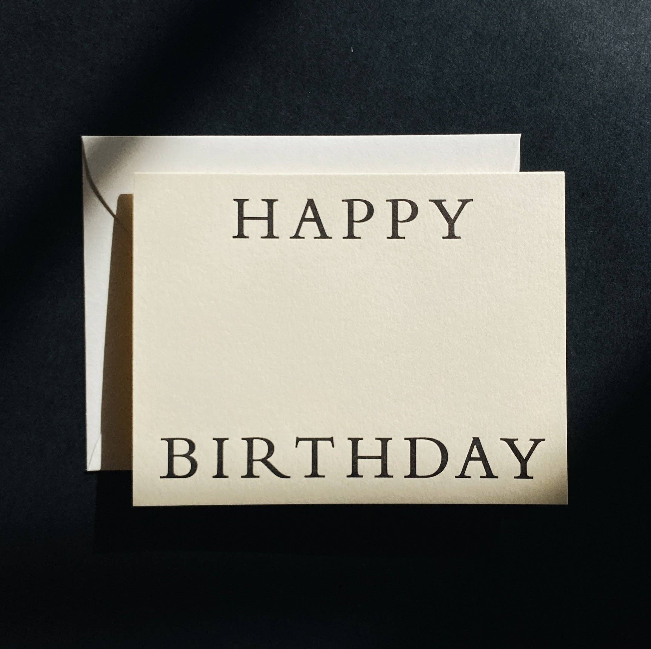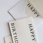 "Happy Birthday" * Creme Cover Stock * Letterpress * Natural Envelope * Blank interior * Made in Santa Barbara * A2 Folded 4.25" L × 5.5" W *
