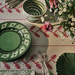 Inspired by Ancient Greek pottery, the beautifully hand painted Green Gigi dessert plate combines modern color with traditional design. The green background contrasts perfectly with the bold typical floral and wave patterns on the border. Match it with the Green Gigi Dinner plate, or mix the colors and opt for the Aqua or Pink!