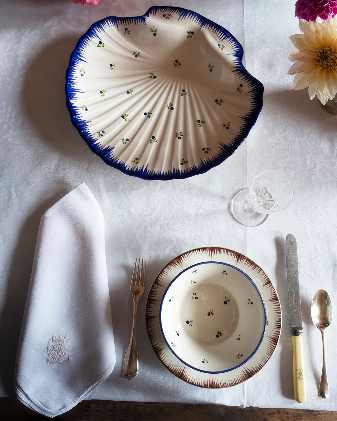 Handpainted in Portugal, the Lily cereal bowl, designed by Remy Renzullo, was inspired by 18th century French faience.