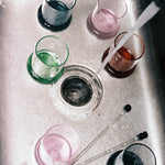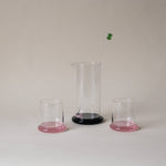 A set of two borosilicate glass tumblers, with matching colorful bases. Perfect for classic cocktails, your favorite aperitif or digestif (with rock or not), cordial or simply a splash of juice. Pairs perfectly with the Fritter Mixer. Material: Borosilicate Glass Dimensions: 3.25"H × 3"W Volume: 6 oz