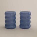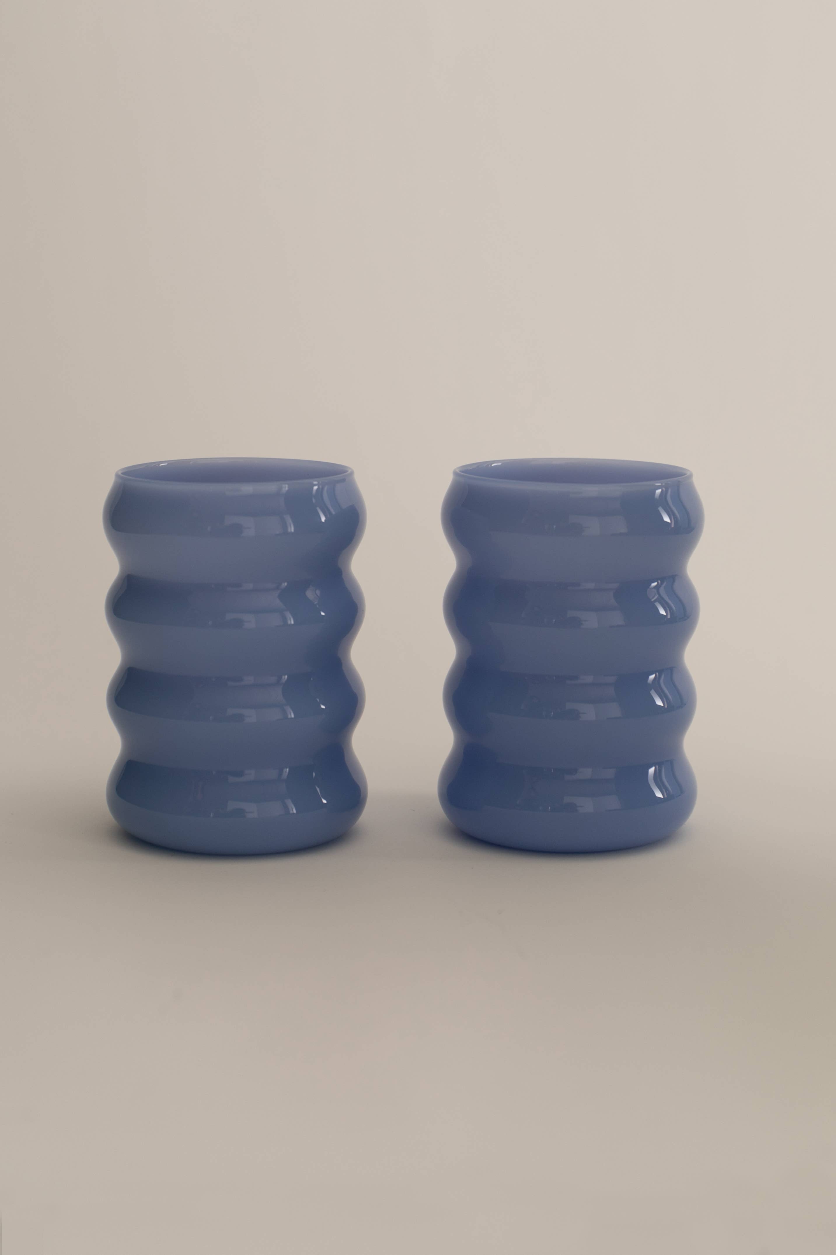Our signature Ripple Cups now offered in a set of two, opaque borosilicate glasses. Perfect for a glass of wine, spirits, cocktails, table water, or any other drink of your preference. The perfect shade of cornflower blue!