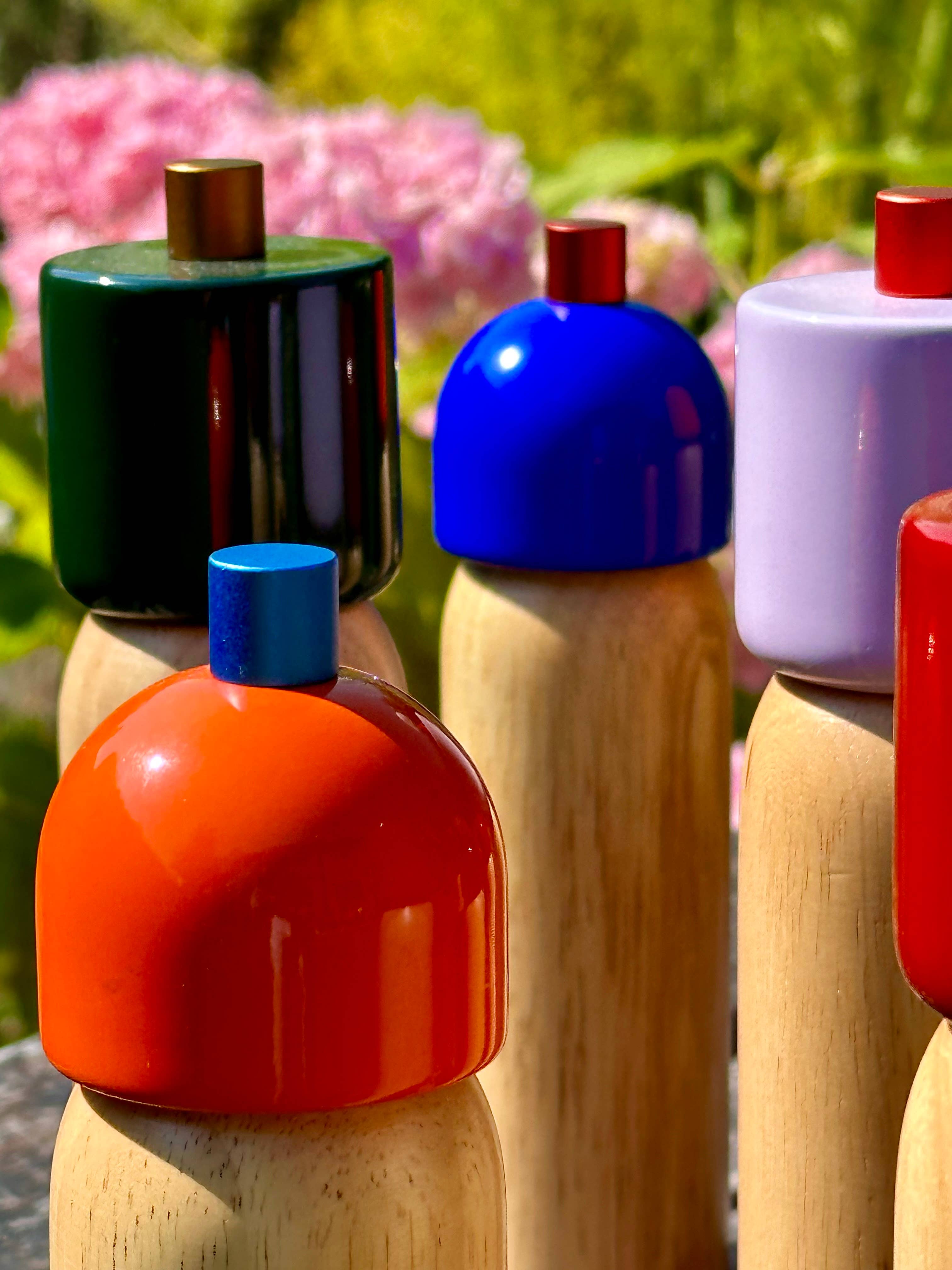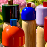 Maegen Tableware Collection Salt and Pepper Grinders (sold separately) Add a vibrant touch to your table and elevate your dining experience with the Maegen Tableware Collection Salt and Pepper Grinders. Crafted from FSC Certified Rubberwood, these elegant grinders combine sustainability with style. Our small grinder stands at 19cm and our large stands at 21.5cm in height, they are the perfect size for easy handling while making a statement on your table. The ceramic mechanisms ensure a smooth, consistent grind every time, allowing you to season your meals to perfection. Bring both functionality and a pop of color to your kitchen with these beautifully designed grinders.