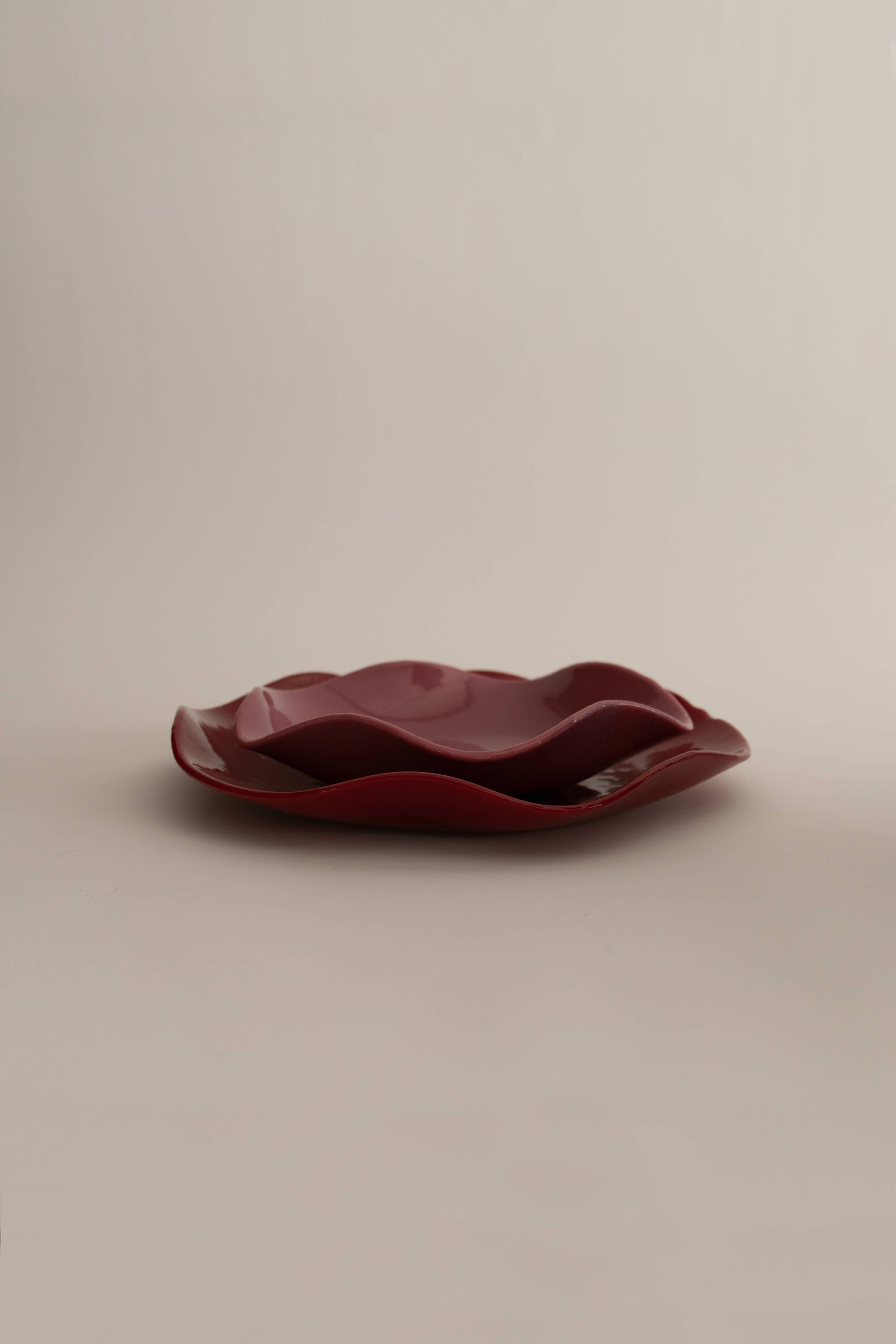 The Petal Plates are a colorful collection of hand-made plates, entirely made in NYC. Available in two sizes, they can be used on their own as serving dishes, combined into a set of dinner plates, or paired with the smaller size to create striking color combinations or color blocked pairings. They also work beautifully as decorative catch all bowls. Made by hand in small batches. These are handmade items—each plate is unique and slight irregularities on the surface may occur. This is a natural result of the production process. Soda-Lima Glass Made in Brooklyn 7.5" Diameter Hand wash only