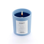 The complexity of Kassett’s coziness is driven by a scent of fresh green foliages mixed with Greek figs, patchouli, Icelandic woods, water jasmine, galbanum, and Tibetan roses to arrive at a familiar, enveloping warmth and a tinge of independent spirits. The pale blue wax and vessel make for the chicest candles we've ever seen.