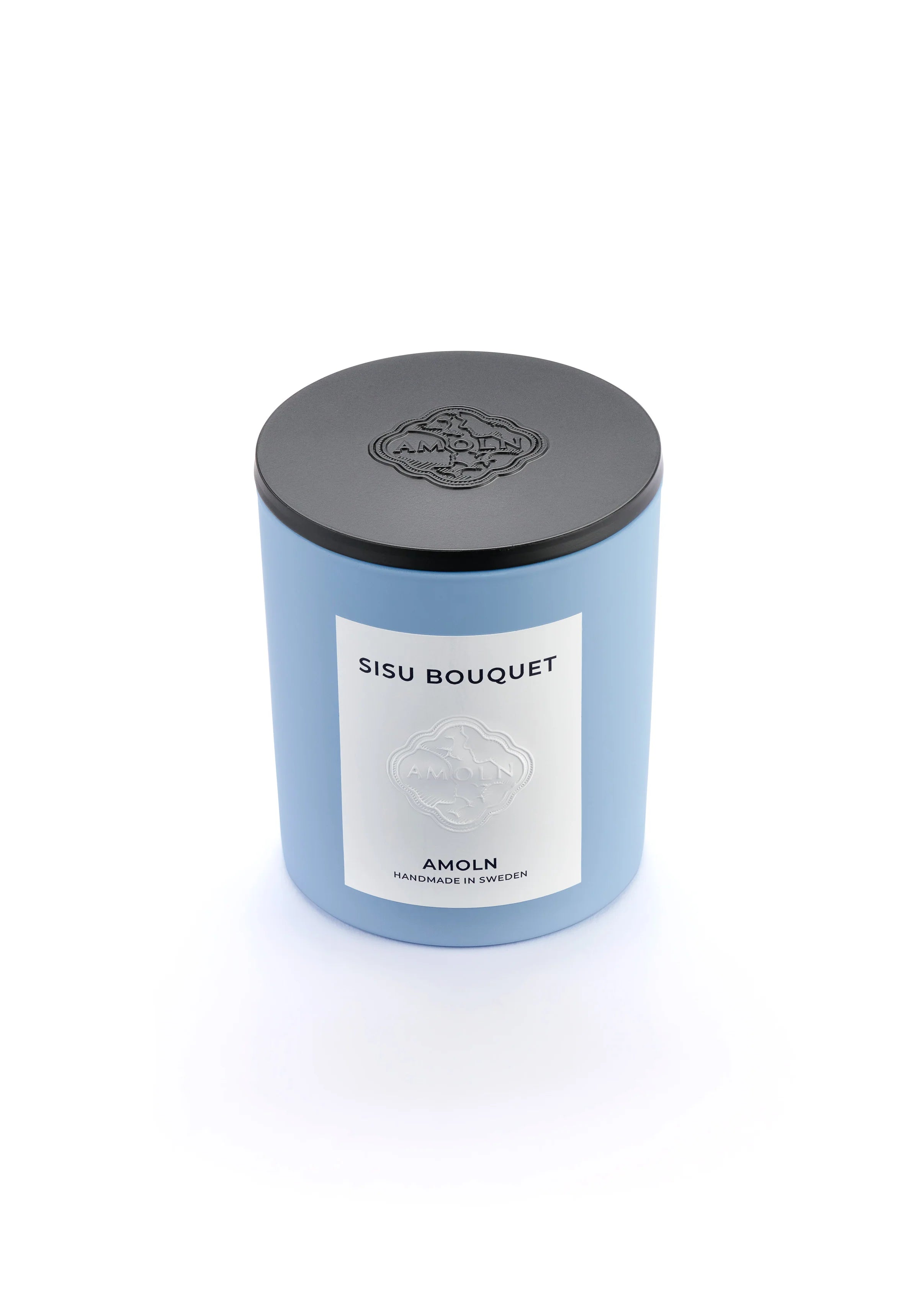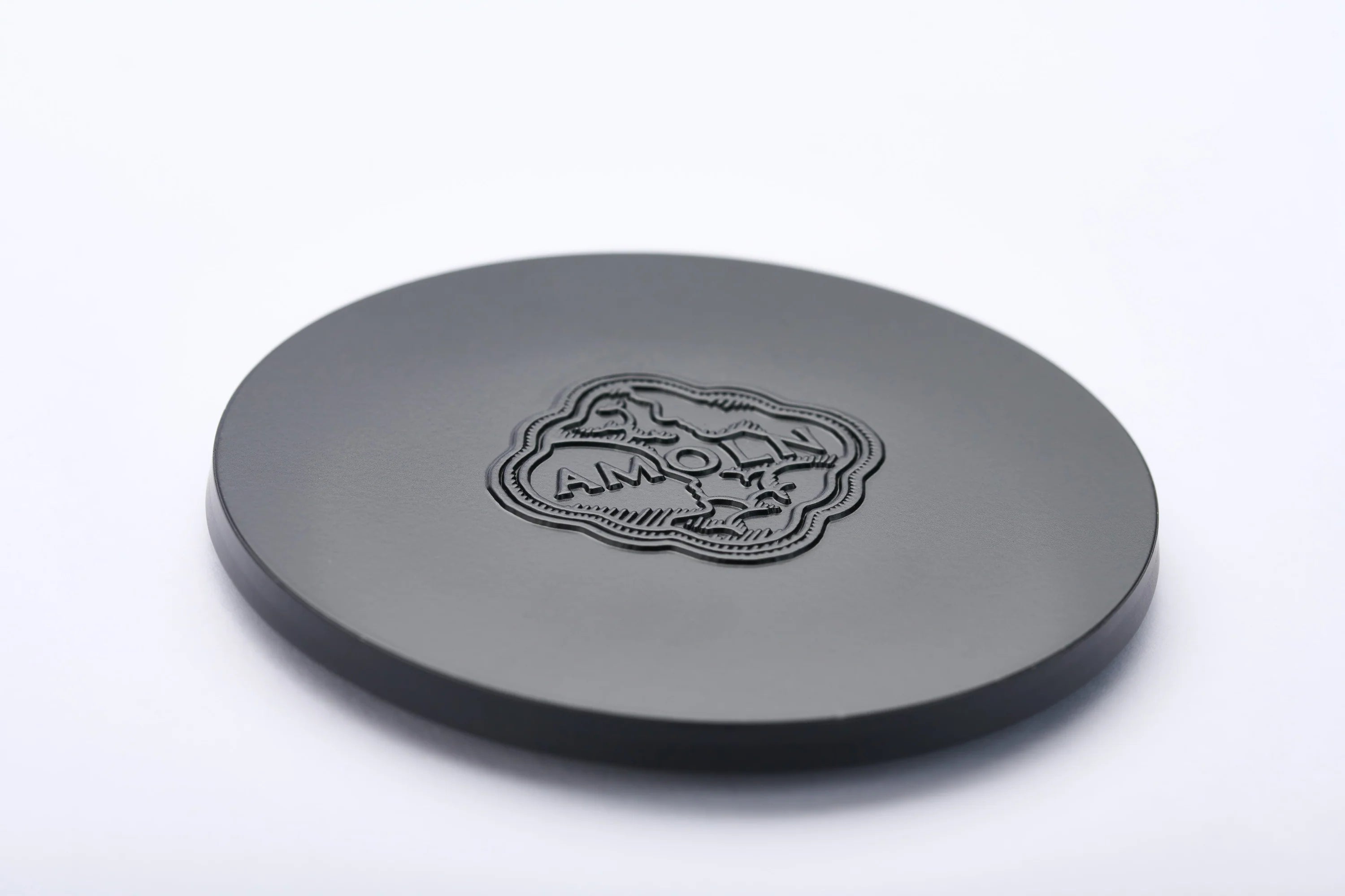 The solid metal candle lid protects Amoln’s monochromatic blue candles and preserves the scent. Handcrafted and featuring Amoln’s embossed logo, each lid is unique.
