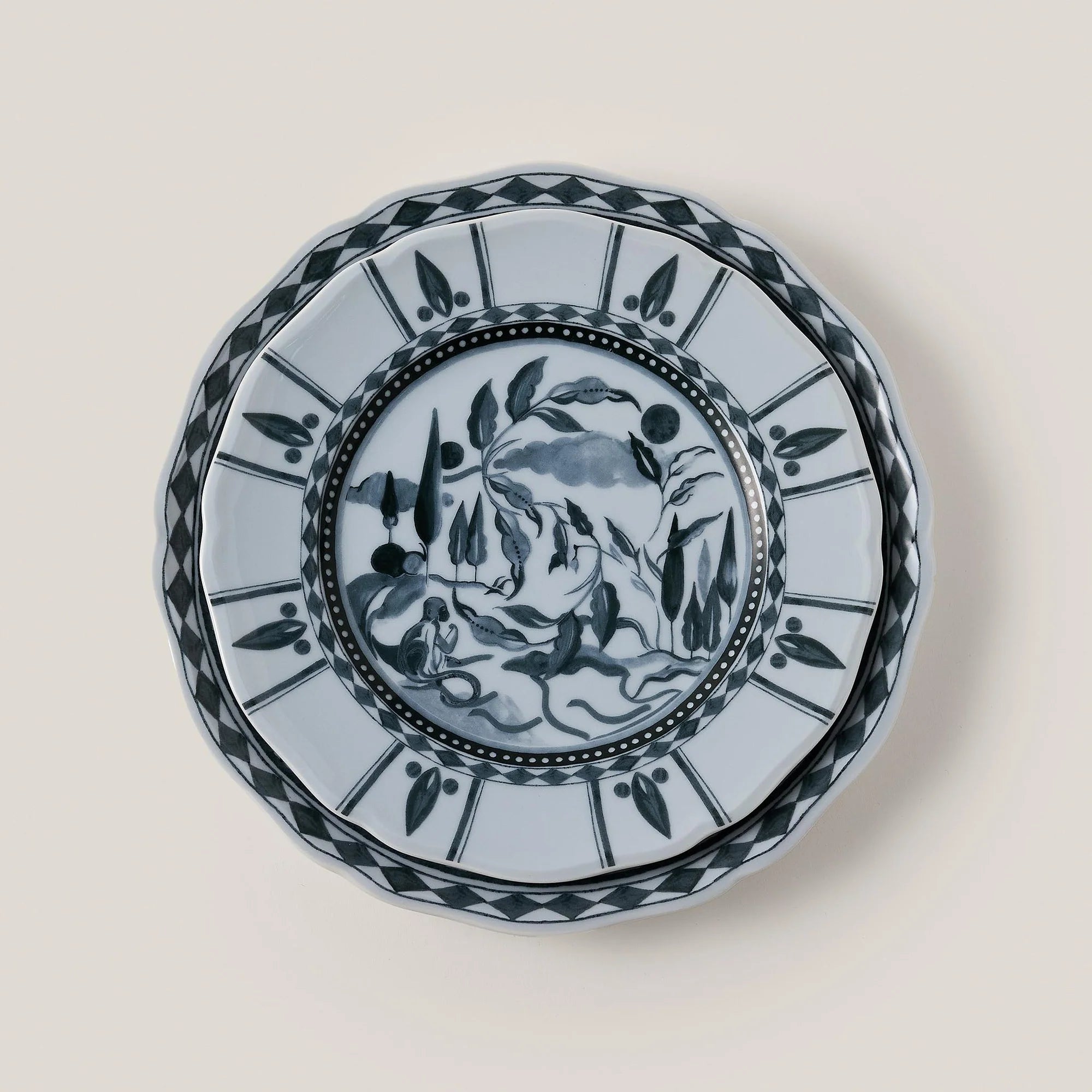 Crafted from fine Japanese porcelain, the Rêverie des Pins tableware evokes stories of escape and daydream. The original gouache illustration is brought to life in rich, vivid tones across three distinct colorways, adding a refined touch to any setting.