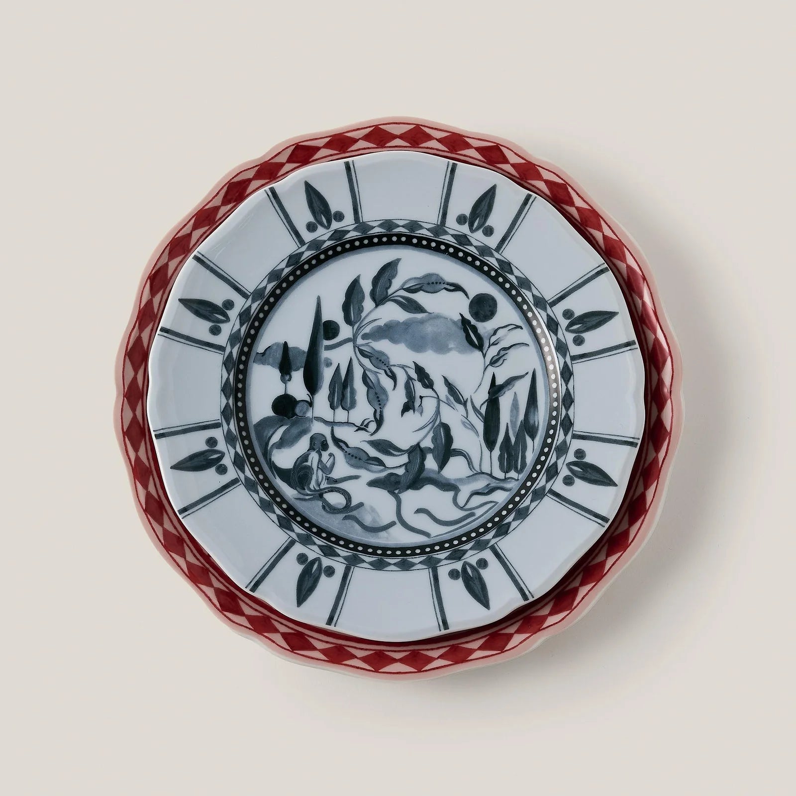 Crafted from fine Japanese porcelain, the Rêverie des Pins diner plates evokes stories of escape and daydream. The original gouache illustration is brought to life in rich, vivid tones across three distinct colorways, adding a refined touch to any setting.