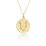14k brushed gold Astrology pendant with 5 VS1 full cut diamonds in a constellation design with 14k gold chain necklace.