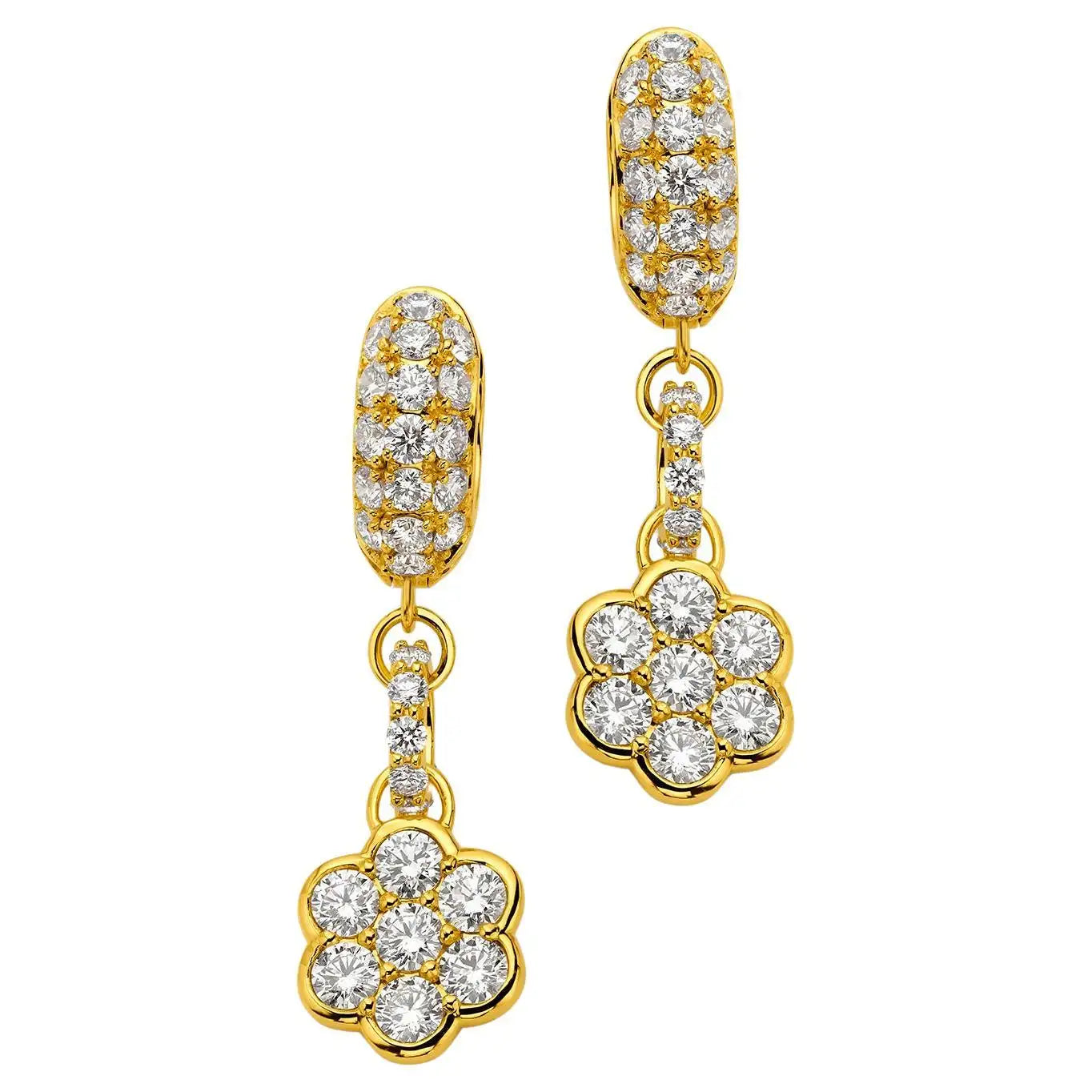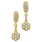 These 20K Yellow Gold Flower Drop Earrings add the perfect touch of glamour. Featuring intricately crafted floral motifs and 1.15 carats of brilliant pavé-set diamonds, they blend refined opulence with modern sophistication. The chunky huggie design gently embraces the earlobe for a comfortable, elegant fit.