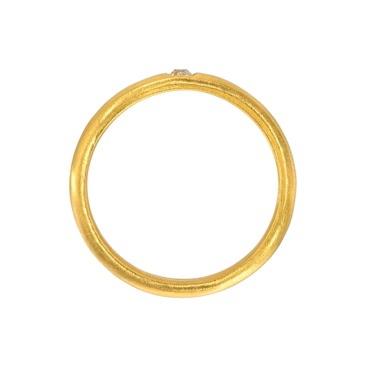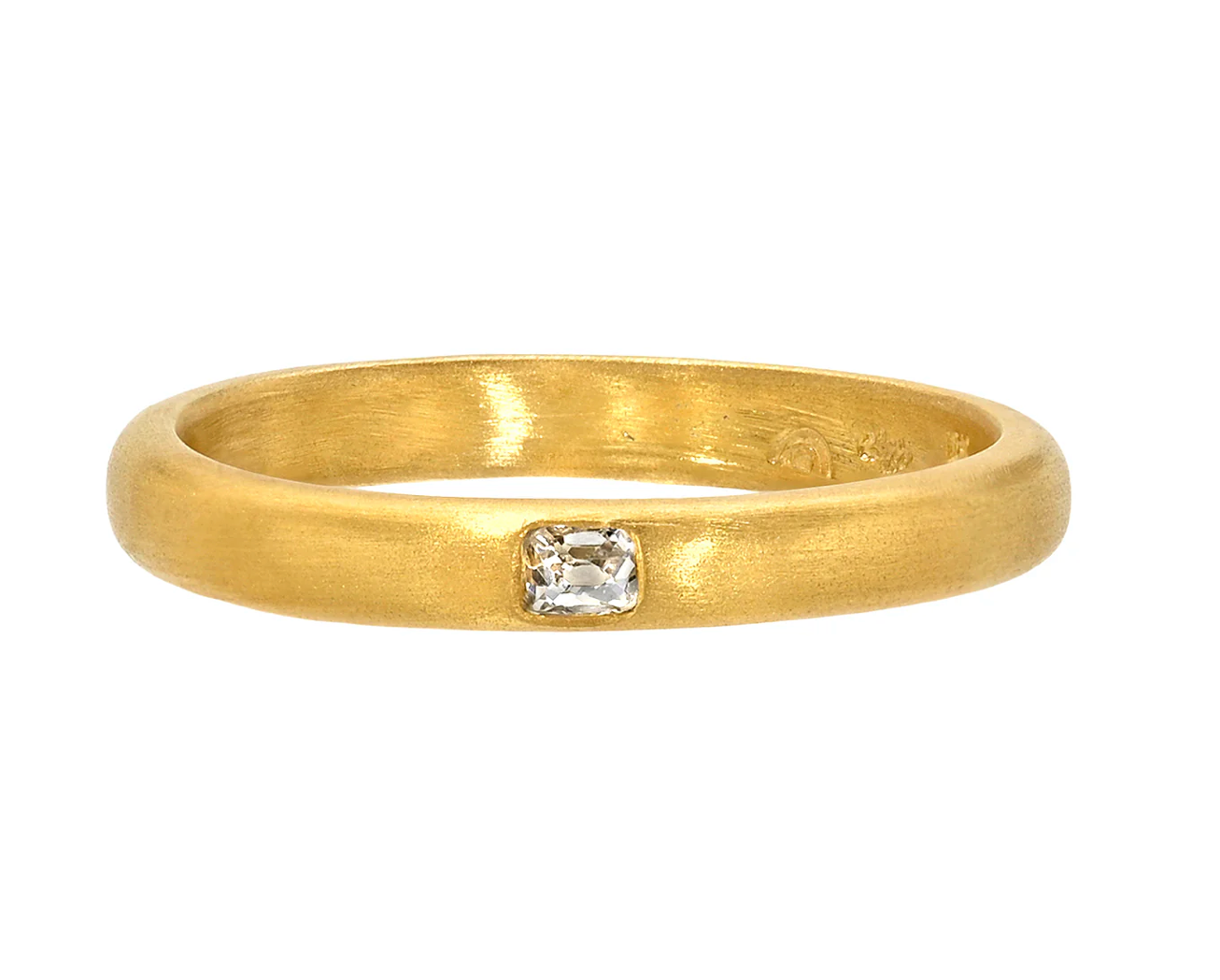 SINGLE DIAMOND SIGNATURE BAND FEATURING APPROXIMATELY 0.08CTS ANTIQUE OLD MINE CUT DIAMOND SET IN 18K FAIRMINED YELLOW GOLD.