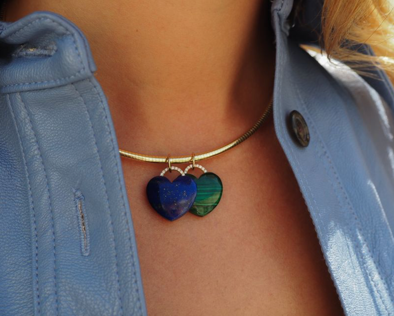 Adding to the unique beauty of these pieces, no two natural stones are alike. This carved heart charm is also available in lapis, white agate, pink opal, amazonite, and blue lace agate. Please contact us at concierge@departmentnashville.com for custom engraving or to select a different stone.