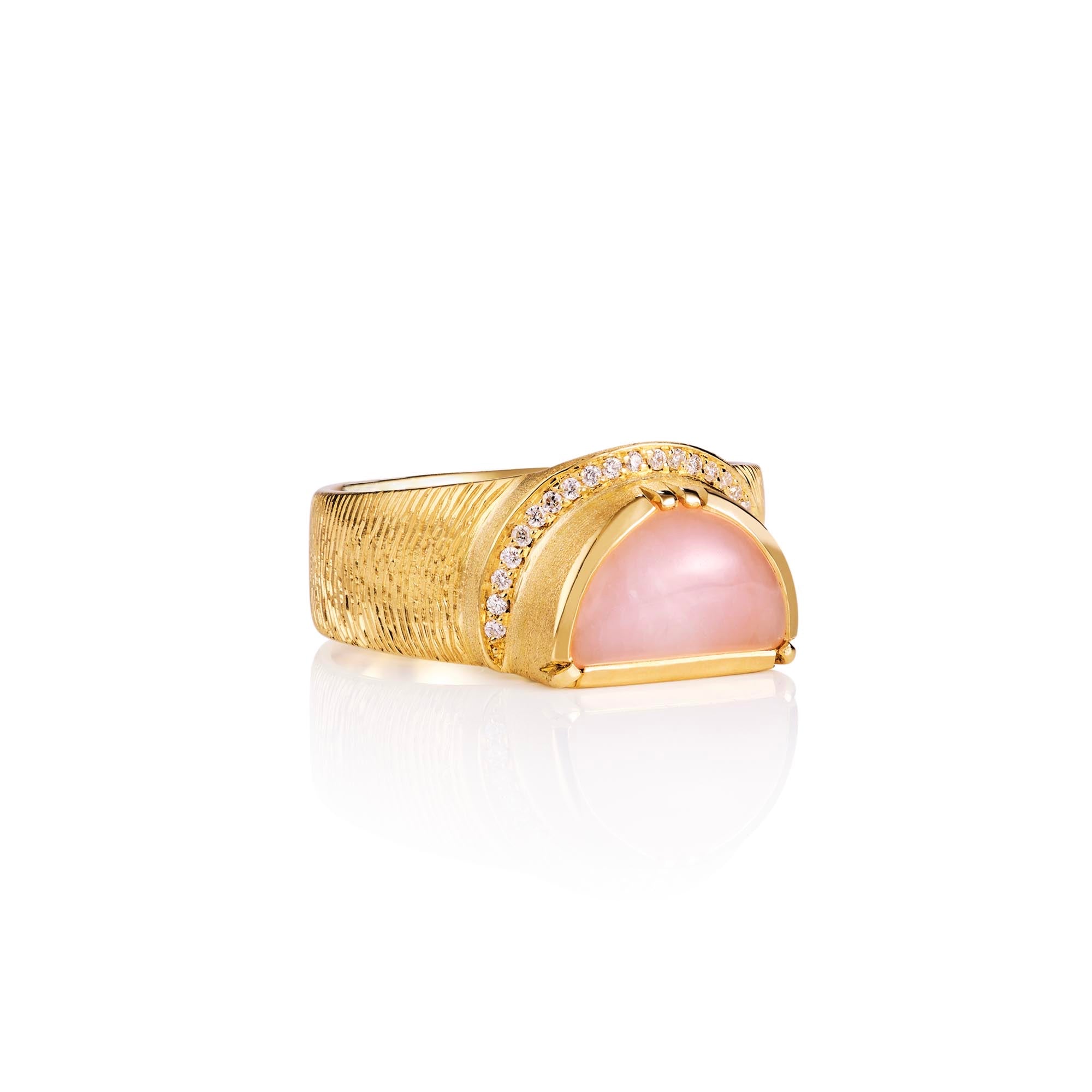 Brooke Gregson - Half Moon Pink Opal Engraved Ring - One Of A Kind