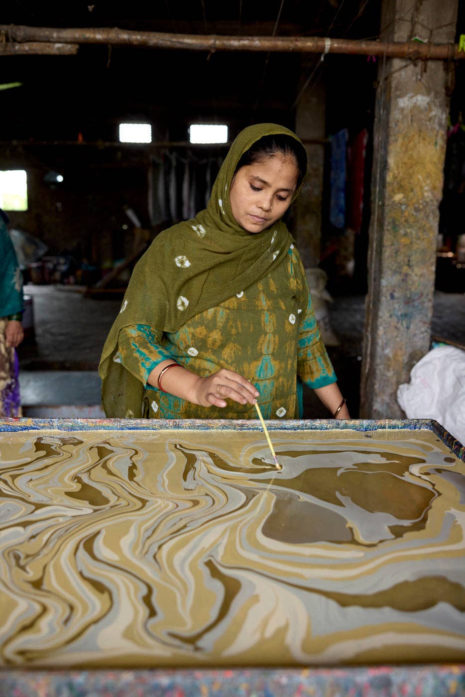 Hand Marbled Wrapping Paper Sheets - Waves Matcha