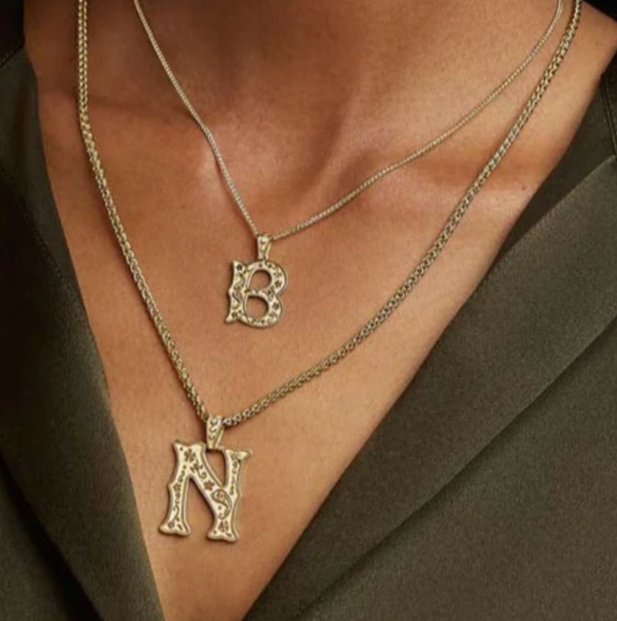 Driving through the sage fields of New Mexico, horseback riding through Georgia O’Keefe’s Ghost Ranch, and hiking through the Aspen Trees, Jesse was inspired to revisit her Desert Rising Collection, introducing a Mini Southwestern Alphabet Collection. Decorated with a gold embroidery of floral and paisley motifs, the Mini Southwestern Letter collection is an ode to the enchantment of the American West and trailblazing women like O’Keefe and Milicent Rogers who embody its spirit.