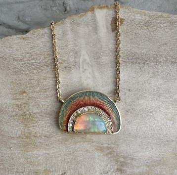 Brooke Gregson - Opal Sunrise Enamel Diamond Necklace