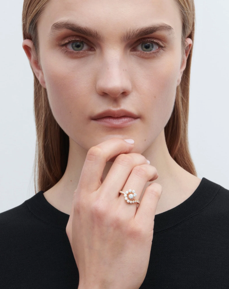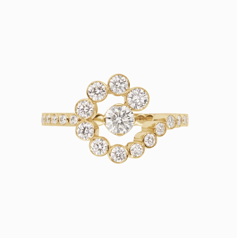 Crafted in 18K certified recycled yellow gold with a total of 1.22 carat Top Wesselton VVS diamonds including a 0.30 ct. solitaire.