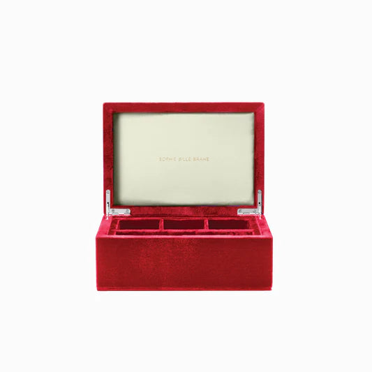 Discover Sophie Bille Brahe's collection of jewelry boxes, perfect for storing and protecting your most precious pieces. The jewellery box collections consist of colorful options in plush velvet with satin lining in various sizes. The smaller Velvet Boxes and the Boîtes are edged with an elegant rope tassel, while Trésor and Trésor Grande feature a compartmentalized interior to organize your most cherished items.